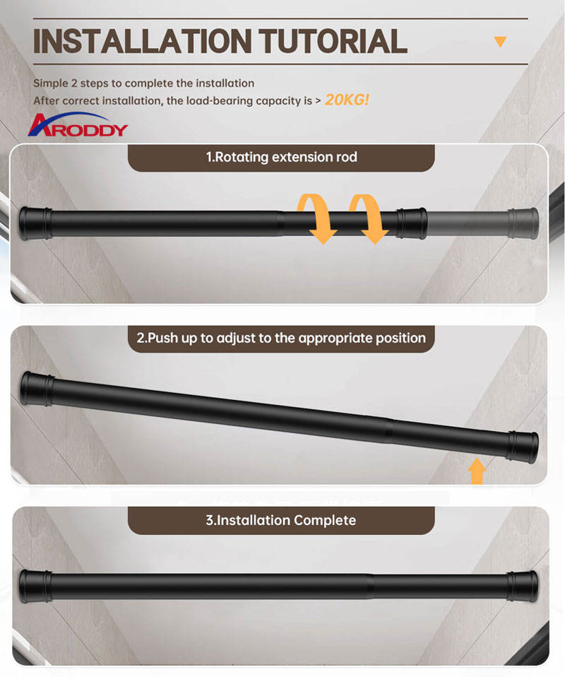 ARODDY Barre de rideau de douche extensible réglable par tension, capacité de charge 20 lb, 0,7-1,2 m, sans perçage, pour salle de bain et porte