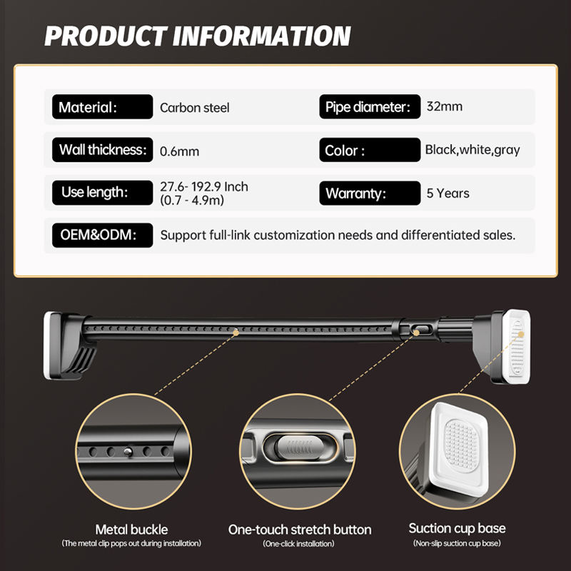 Tringle à rideaux moderne ARODDY en métal de 1 à 2,2 m avec installation facile en DIY, porte-vêtements mural à ressort pour chambre