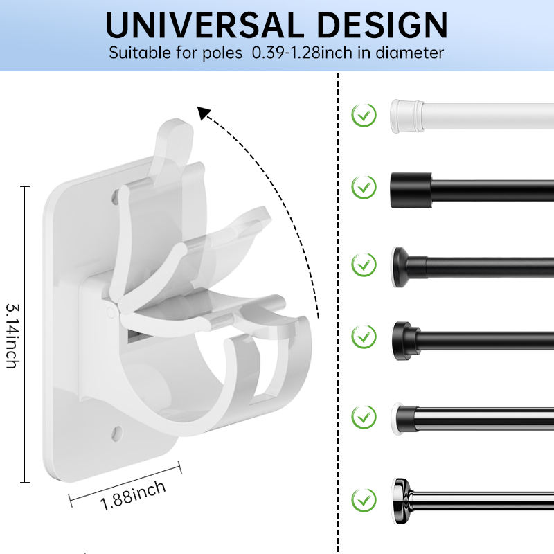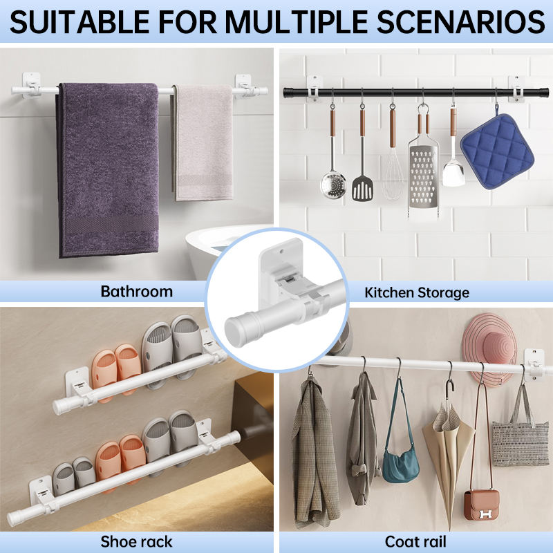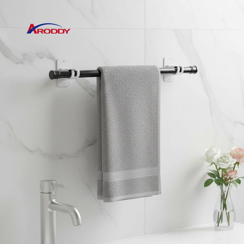 ARODDY Barre de tension murale autoportante moderne sans vis réglable de 0,5 à 1,6 m, porte-serviettes noir avec fonction de nettoyage facile