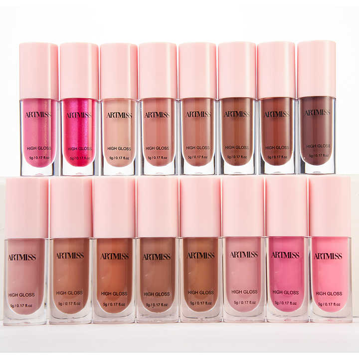 ARTMISS Vente en gros de rouge à lèvres végétalien, gloss à lèvres transparent nude avec paillettes, logo personnalisé, gloss à lèvres brillant en marque privée