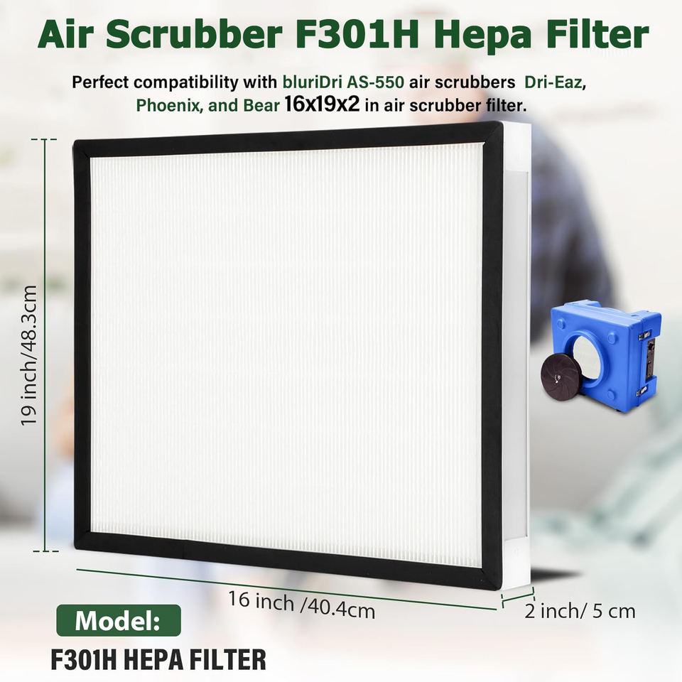 AS-550 Filtre à air HEPA Stage 2 H13 16 "x 19" x 2 "F301H Filtre HEPA Compatible avec Bluedri Air Shield 550 Dri-Eaz Bear