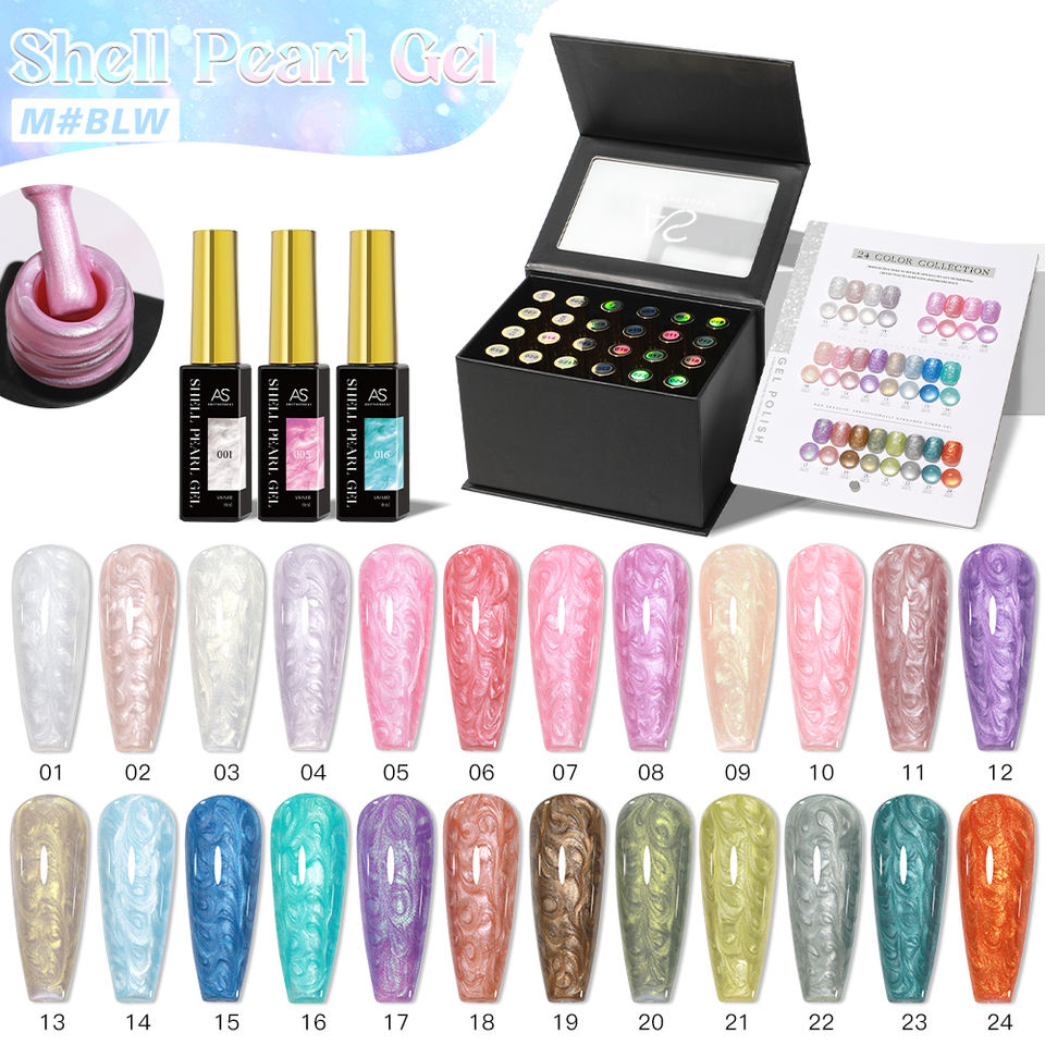 Vernis à ongles en gel perlé professionnel à étiquette privée AS, 24 couleurs, logo personnalisé, sans cruauté, multi-effets, OEM ODM, vernis perlé