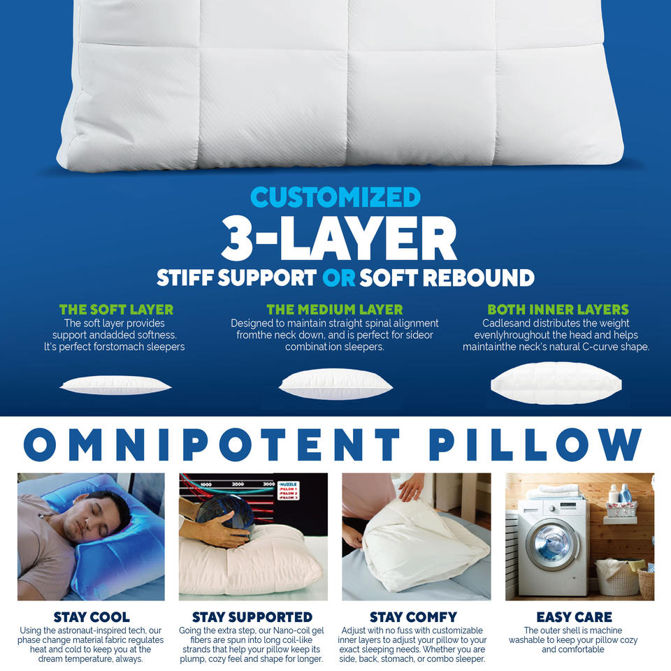 AS-SEEN-ON-TV 3 Couches Ultra Cool Confortable Réglable Ergonomique Hôtel Sommeil Cou Oreiller Lit Oreiller Cervical pour Dormir