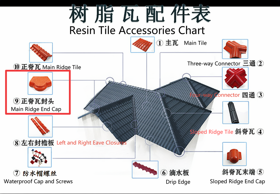 Capuchon d'extrémité de pignon principal en résine synthétique ASA, tôles de toiture ondulées en PVC et accessoires
