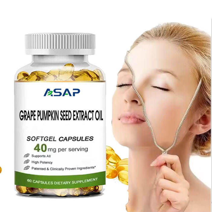 Nom du produit:Capsules de soin pour la peau à l'huile d'extrait de graines de courge et de raisin, enrichies en vitamine E.