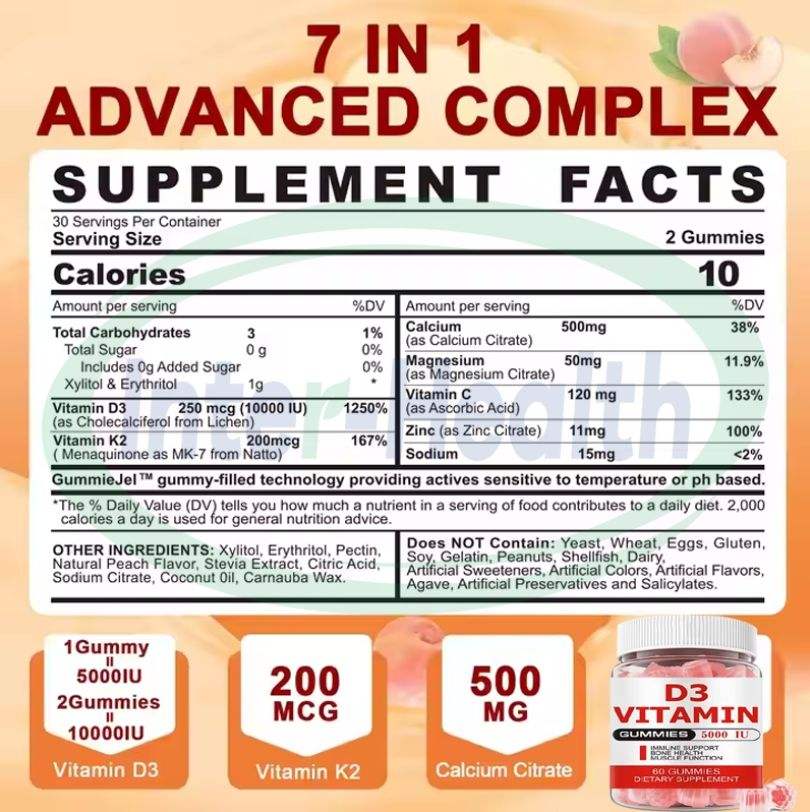 Nom du produit:Gommes de vitamine D3 K2
