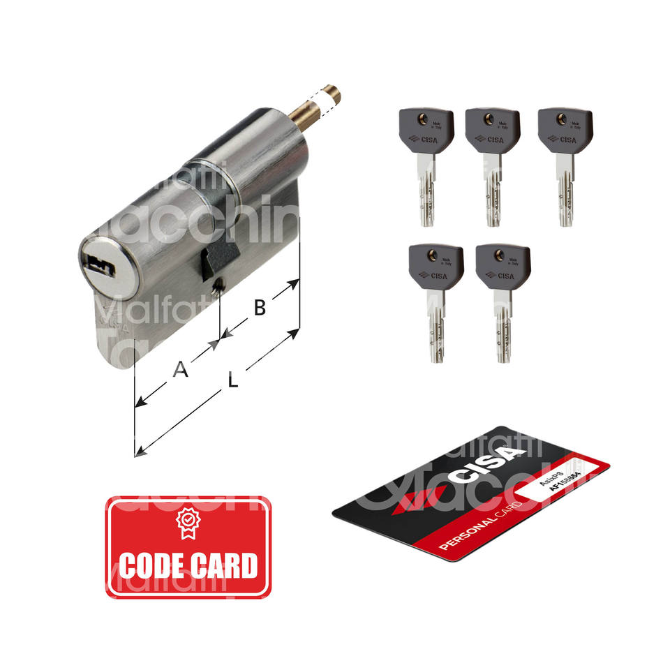 ASIX P8 CYLINDRE DE SÉCURITÉ AVEC PRÉPARATION DE BOUTON Laiton nickelé Tige réglable 5 touches Carte de code