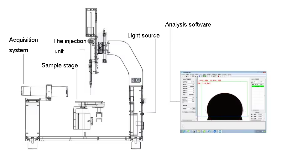 Goniomètre optique pour l'angle de wetting ASTM D724 D5946 ISO15989, instrument de mesure de l'angle de contact, prix fabricant
