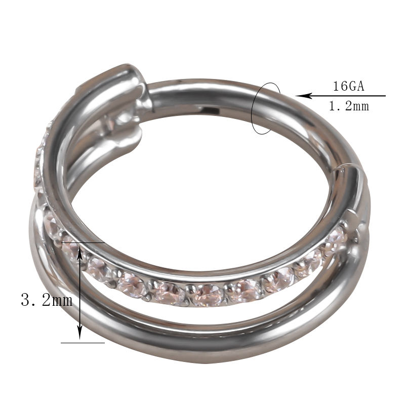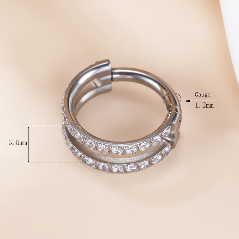ASTM F 136 titane 2 rangées espace cubique Zircon pavé côtés articulés Segment anneaux nez anneaux boucle d'oreille Piercing bijoux pour femmes