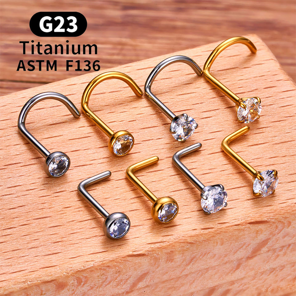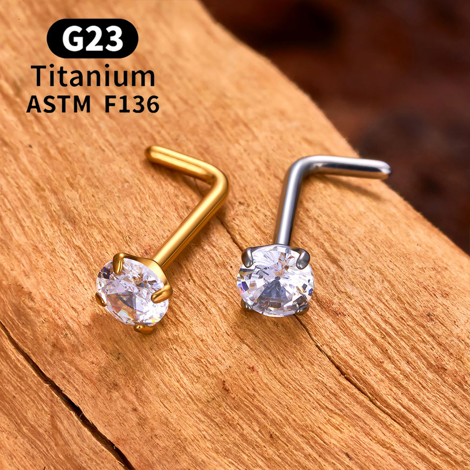 ASTM F136 G23 titane Piercing nez goujon 20G L-forme Nariz goujons avec Zircon 2-3mm nez anneaux narine Piercing bijoux