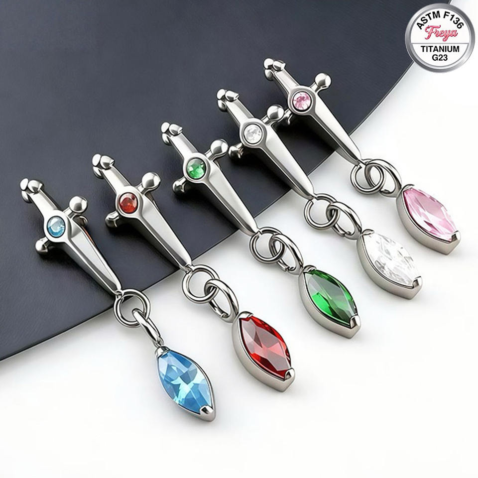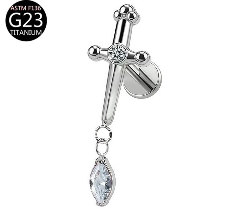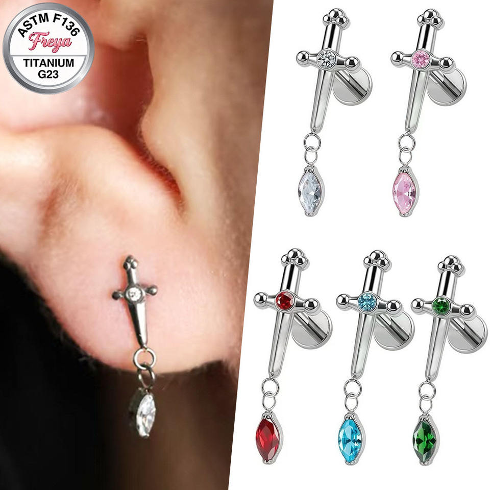 Boucles d'oreilles pendantes en forme de goutte d'eau avec zircon plaqué argent ASTM-F136, piercing en titane pour cartilage d'oreille, lobe, hélix, cadeau de fiançailles