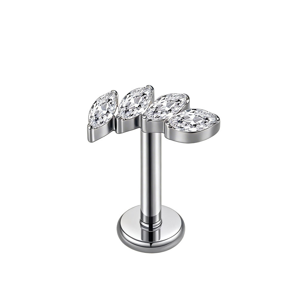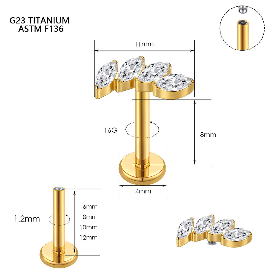 Piercing Labret Classique en Titane ASTM F136 Plaqué Or 24K, Zircon Taille Marquise, Motif Fleur, pour Cartilage Hélix, Cadeau de Mariage et Fiançailles