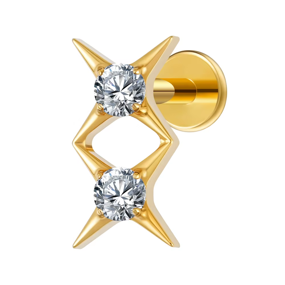 ASTM F136 Titanium Double Star Stud Ear Ring 16G Starburst CZ Flat Back Labret Stud Cartilage Helix Tragus Piercing