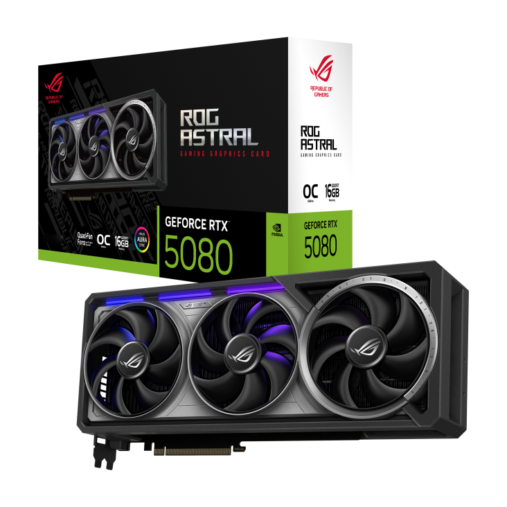 Carte graphique de jeu ASU ROG Astral GeForce RTX 5080 OC Edition (PCIe 5.0, 16 Go GDDR7, DP 2.1, conception à 4 ventilateurs, ventilateurs Axial-tech)