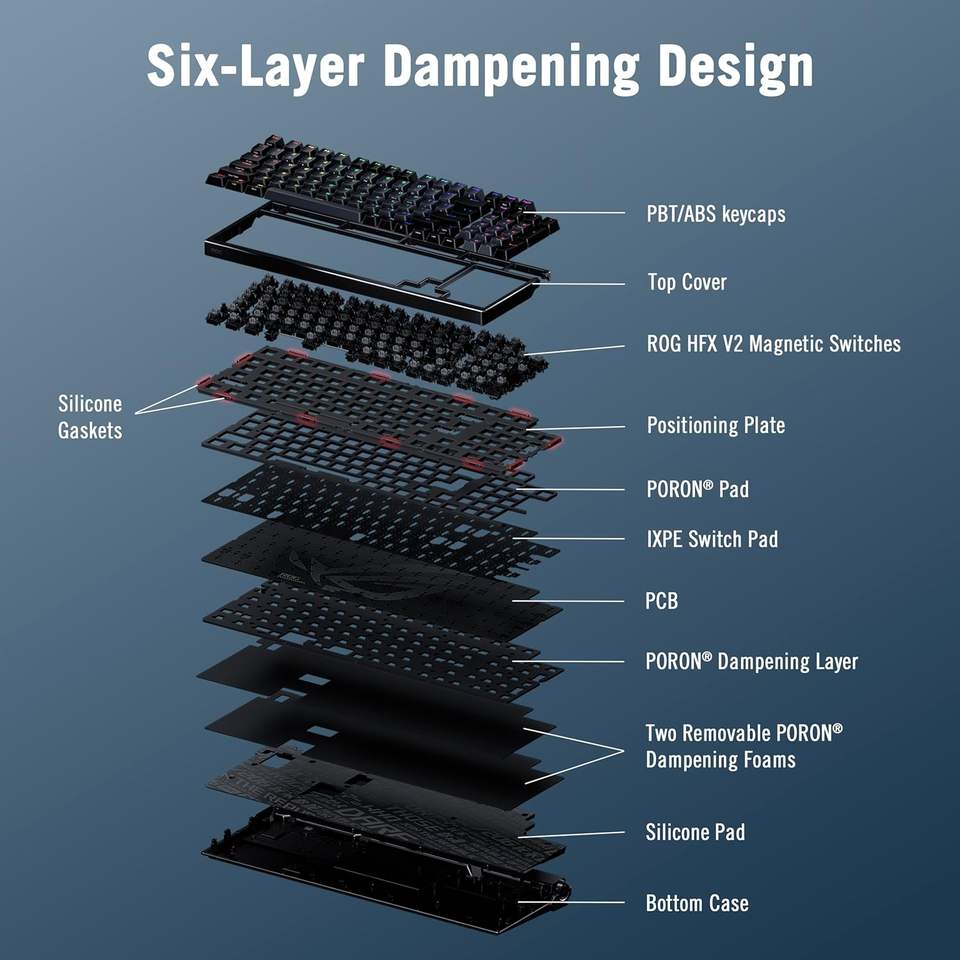 Clavier de jeu sans fil ASUS ROG Azoth 96 HE, 96 % taille standard, tri-mode, interrupteurs magnétiques à échange à chaud, rétroéclairage RVB