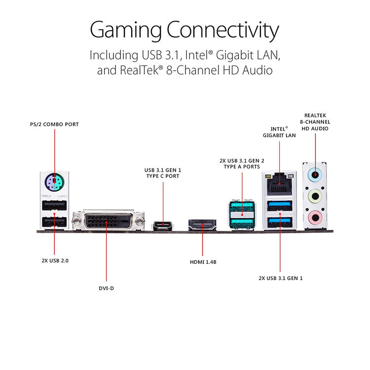 Dvi, Affichage de ports, Ethernet, M.2, Pci-e 3.0, Pci - Express X1, Pci - Express X16, Pci - Express X4, Pci - Express X8, PS2, SATA, USB 2.0, VGA, USB3.1Ports
