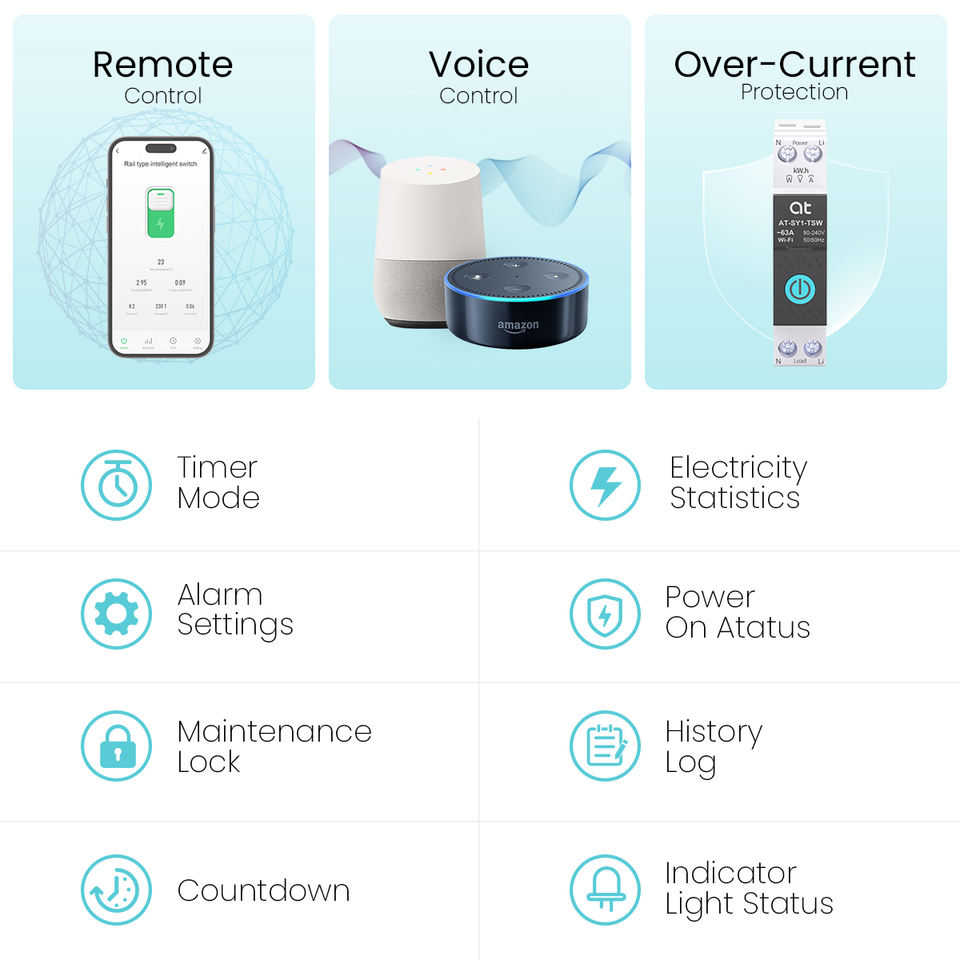 Interrupteur intelligent WiFi AT Mini TUYA pour maison connectée, relais sur rail DIN avec mesure, surveillance facile, disjoncteur miniature de type MCB, interrupteur WiFi