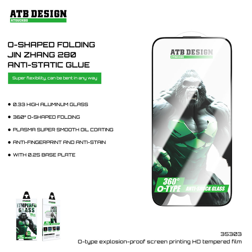 ATB O-type Fold Verre trempé anti-explosion anti-traces de doigts anti-huile couverture intégrale HD clair anti-reflet pour téléphone portable