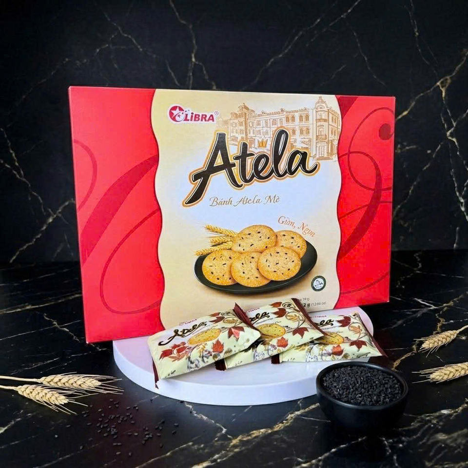 ATELA 342g Biscuits au sésame croustillants, craquelins ronds, collation sucrée, FMCG, fabricant OEM Vietnamien