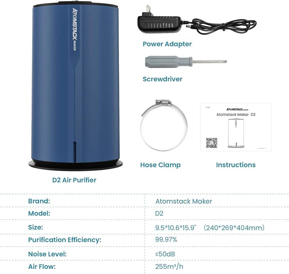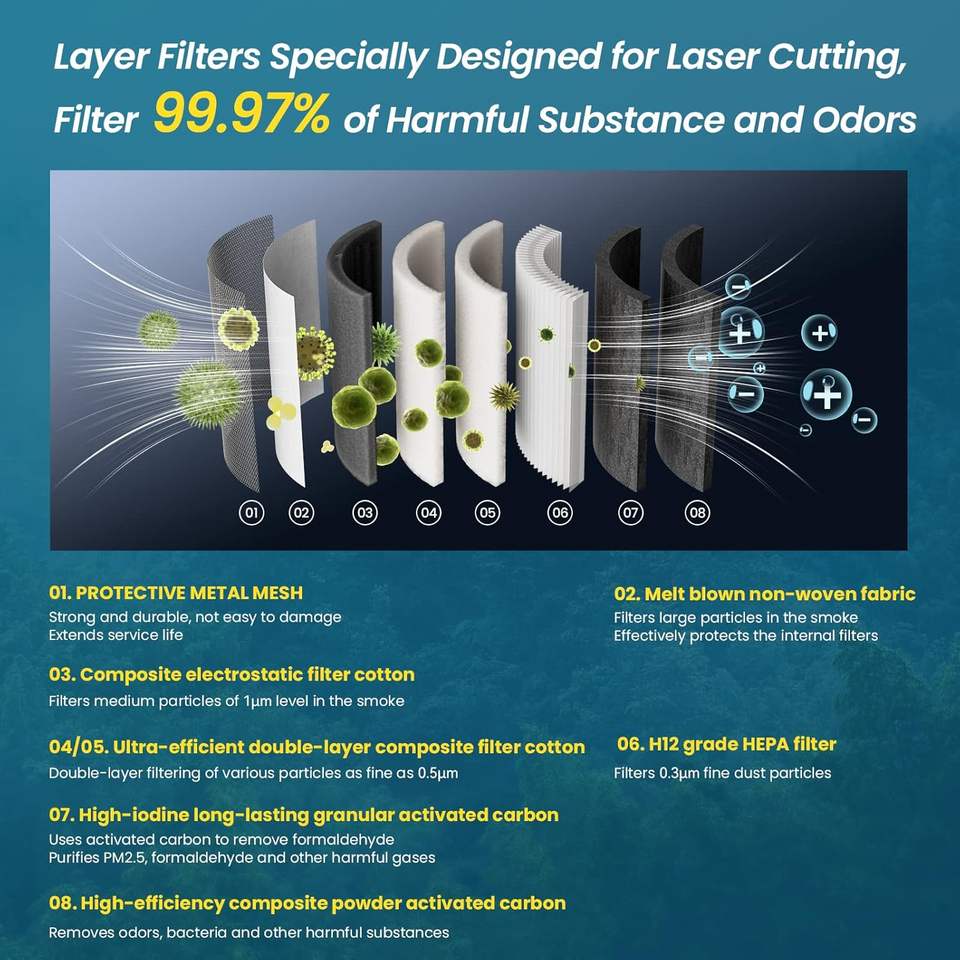 Purificateur d'air ATOMSTACK MAKER D2 pour graveur laser, absorbeur de fumée avec 8 couches de filtration pour Ortur NEJE Xtool Sculpfun Cutter
