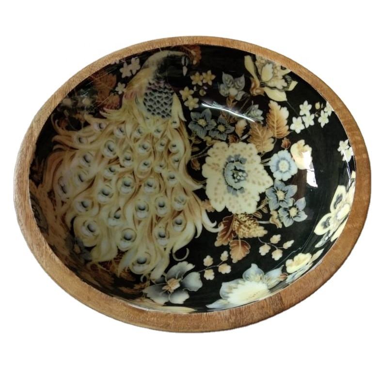 Bol en bois imprimé de fleurs attrayantes, bol à salade
