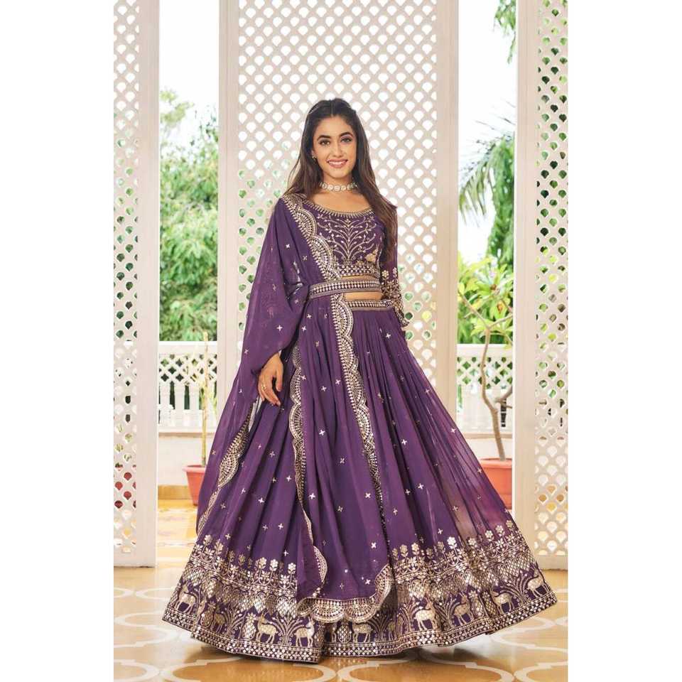 ATTRACTIVE GEORGETTE EMBROIDERY SEQUENCE WORK LEHENGA CHOLI WITH DUPATTA BELT PURPLE