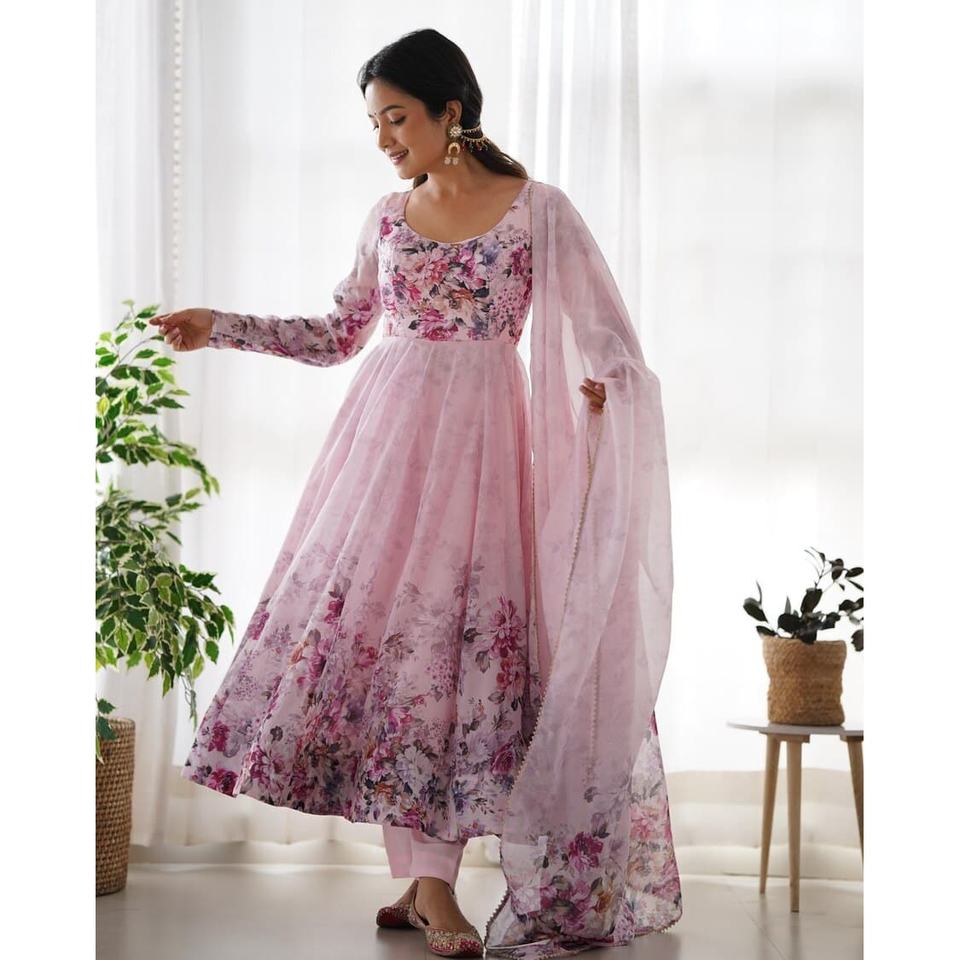 ATTRACTIVE ORGANZA BELLE IMPRIMÉ ROBE DE TRAVAIL BAS AVEC DUPATTA BABY PINK