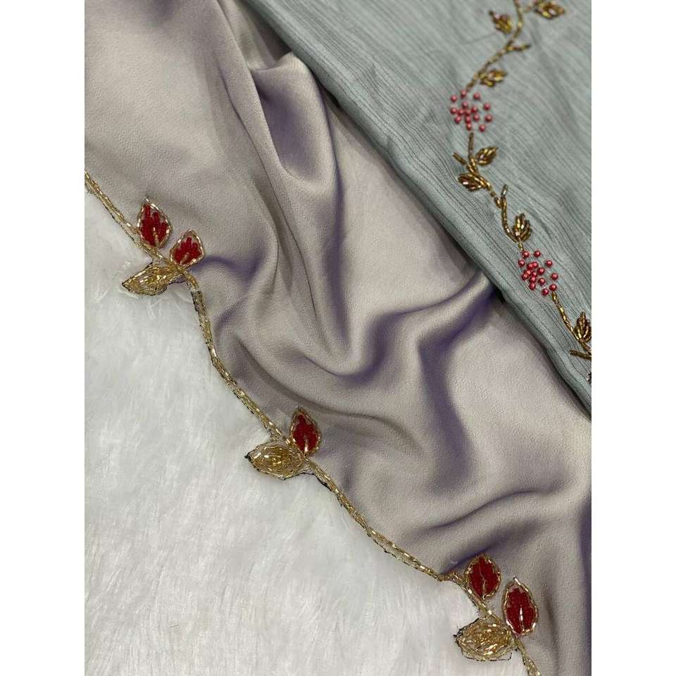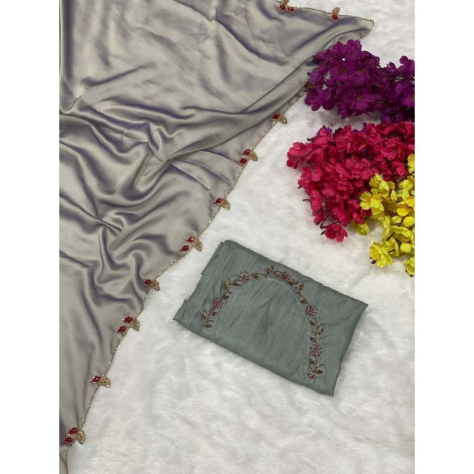 ATTRACTIVE RANGOLI SILK HAND WORK SAREE WITH UNSTITCHED BLOUSE GREY