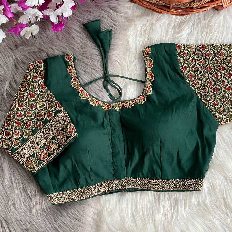 SÉQUENCE DE SOIE ROMAINE ATTRACTANTE CODAGE ET BRODERIE AU FIL TRAVAIL PRÊT À PORTER BLOUSE VERT