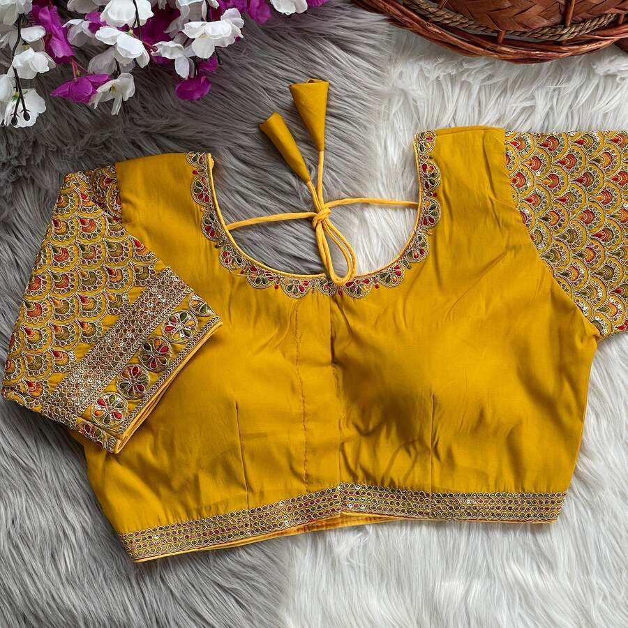 ATTRACTIVE ROMAN SILK SEQUENCE CODING and THREAD EMBROIDERY WORK READY to WEAR BLOUSE YELLOW