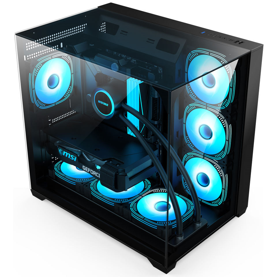 Boîtier PC de jeu ATX Cube, ordinateur de bureau, double panneau en verre trempé, boîtier PC avec ARGB, tour moyenne, prend en charge 7 ventilateurs