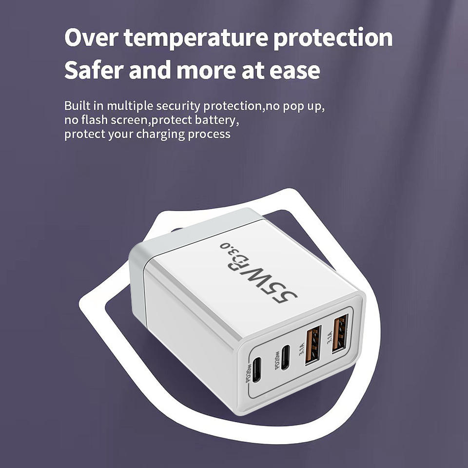 AU UK EU US Socket Plug 4 Ports 55W Super Fast Charging 2 Type C + 2 USB a PD 20W Power Charger pour iPhone pour 16 15 14 13 Pro Max