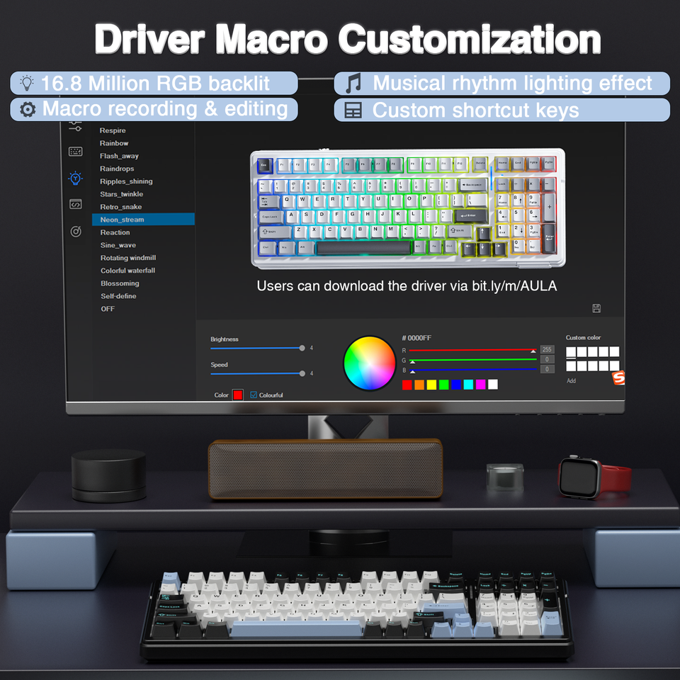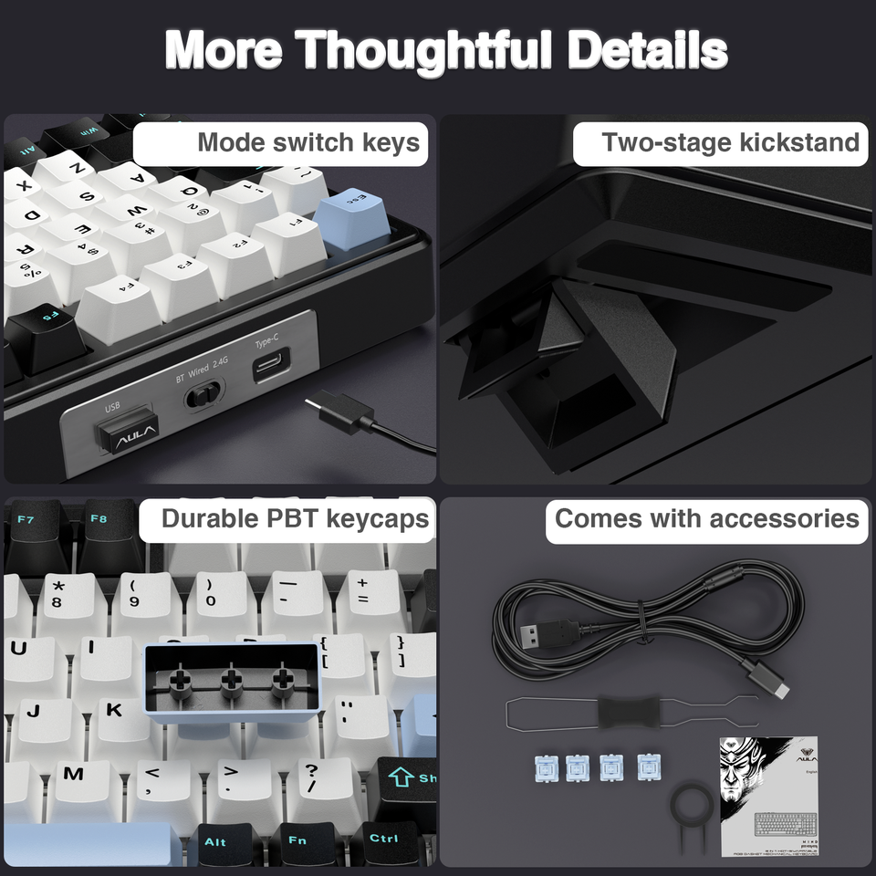 Clavier mécanique sans fil AULA F99 RGB rétroéclairé PROUSB, tri-mode, à touches remplaçables à chaud, structure de pavé personnalisée, clavier de projection pour PC/tablettes