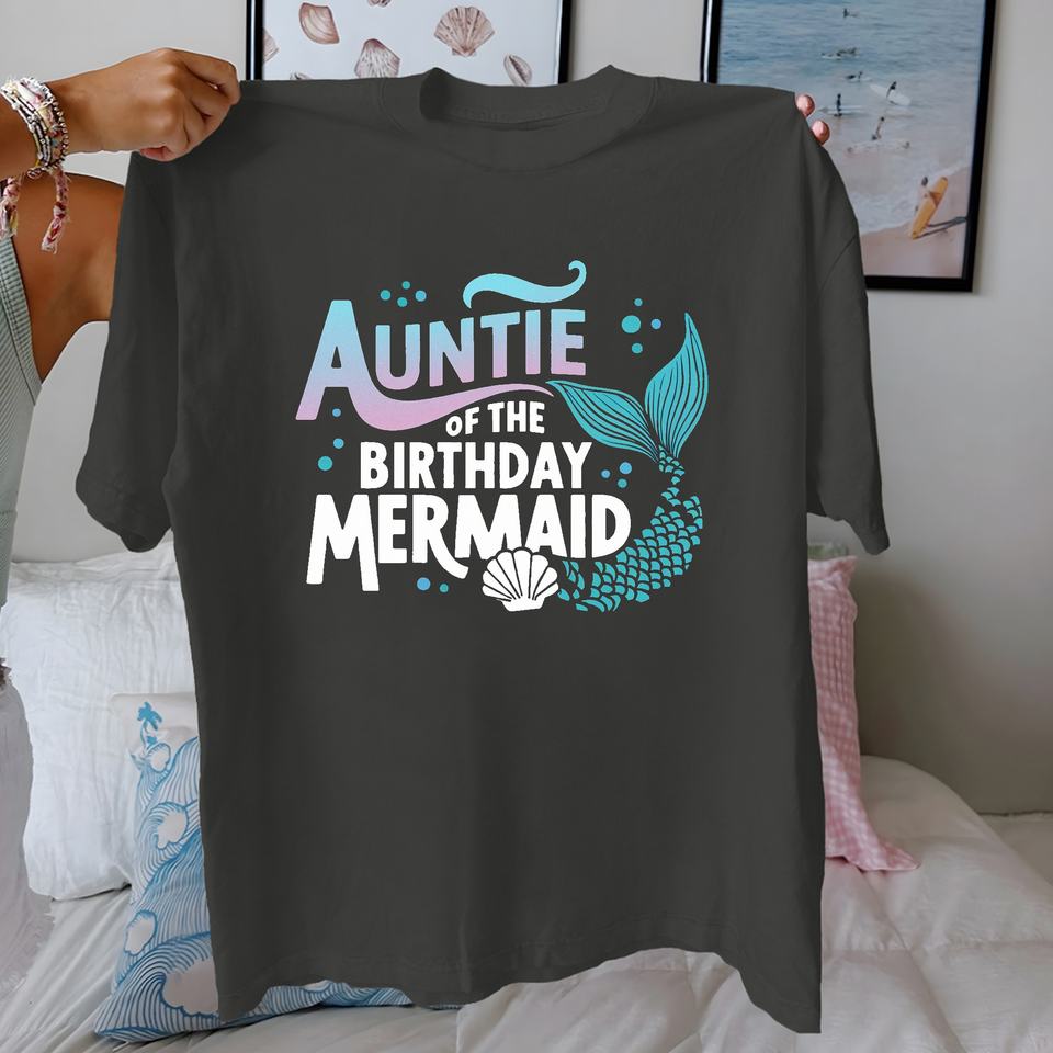 AUNTIE of the BIRTHDAY Mermaid design pure cotton women's Tshirt comfort fit