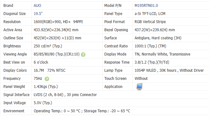 Taille de l'écran:19,0 pouces