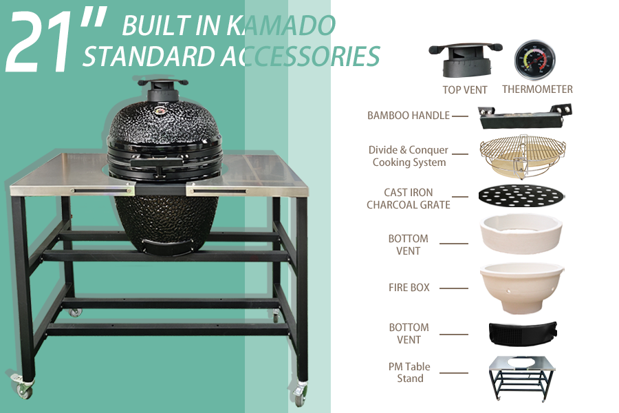AUPLEX-BBQ13-27 mobile Kamdo de toutes tailles pour table de fumoir d'extérieur verte avec roues Asador De Carbon Parrilla