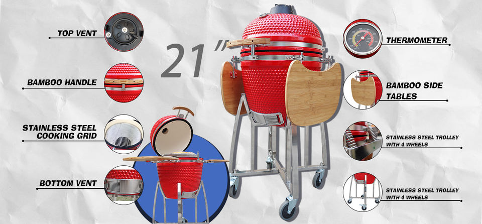 AUPLEX Pizza Barbecue 21 pouces rouge extérieur BBQ Kamado Grill pour camping Chef avec machine à pierres en acier Fumeur d'intérieur sans fumée