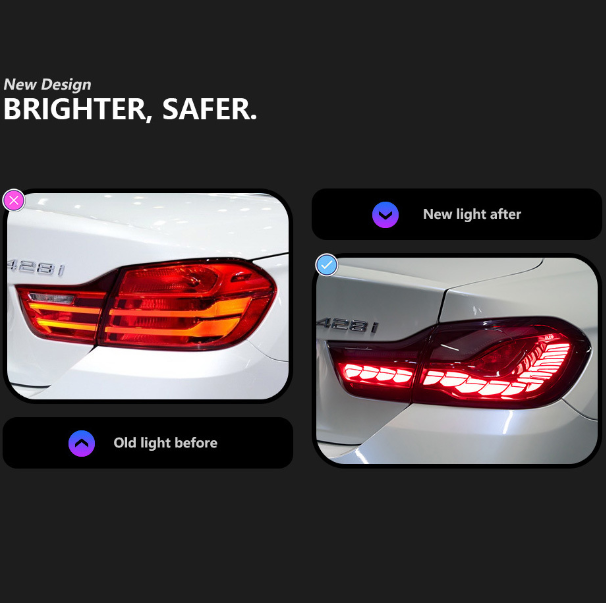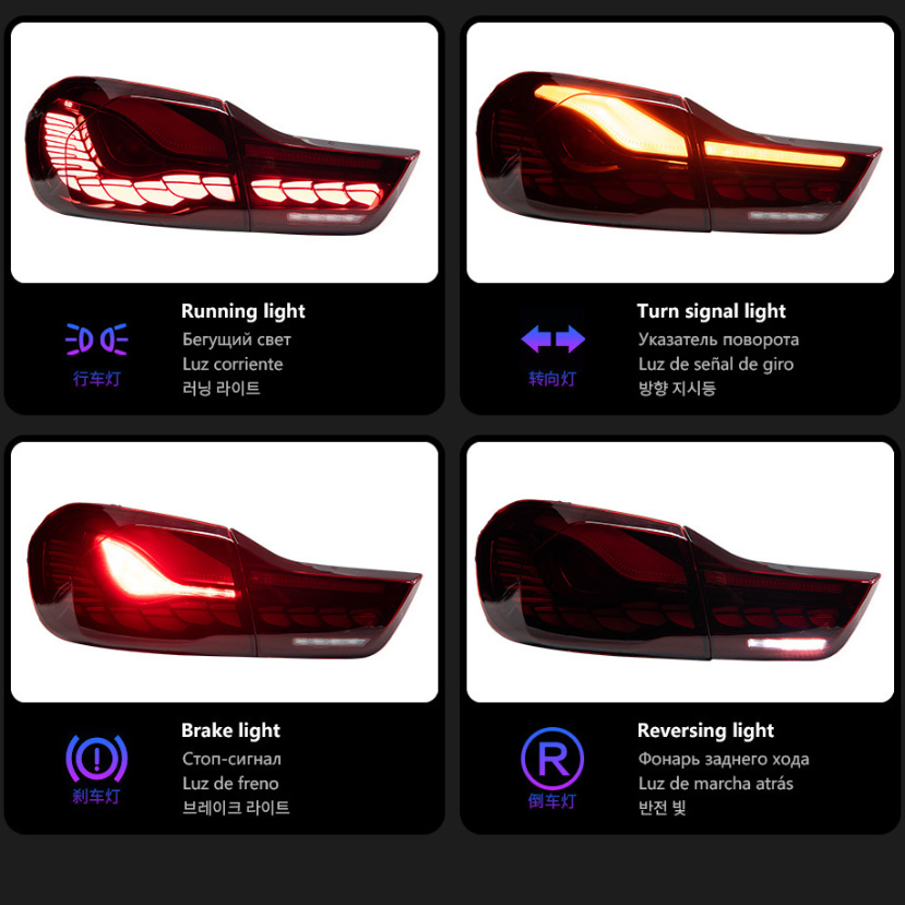 AURON LED Clear Retrofit 4 Series M4 F32/F33/F36/F82/F83 Dragon Scale Glow Rear Lamp 12V 36W Rouge/Jaune 6000K Universel