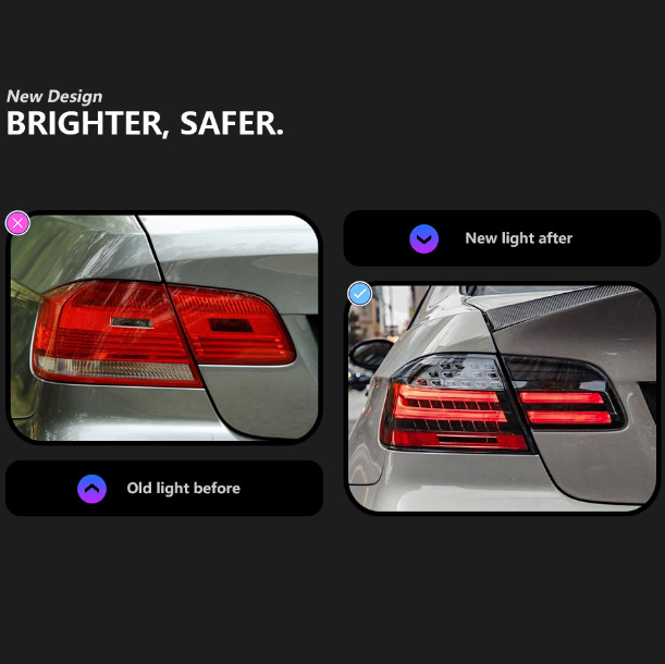 Feux arrière LED AURON, mise à niveau, 6000K, 6000 lumens, 36W, compatibilité universelle pour Série 3 E92 2006-2012 M3 325i 330i, transparent