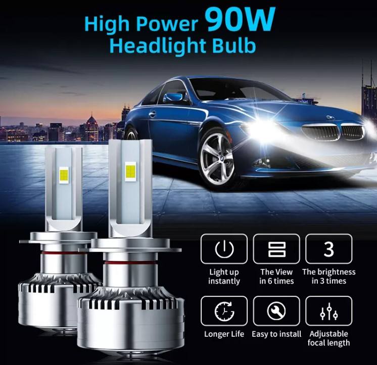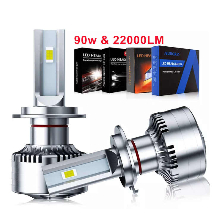 AURORA – ampoules de phares Led pour voiture, 90W, Kit de phares antibrouillard, H7, H4