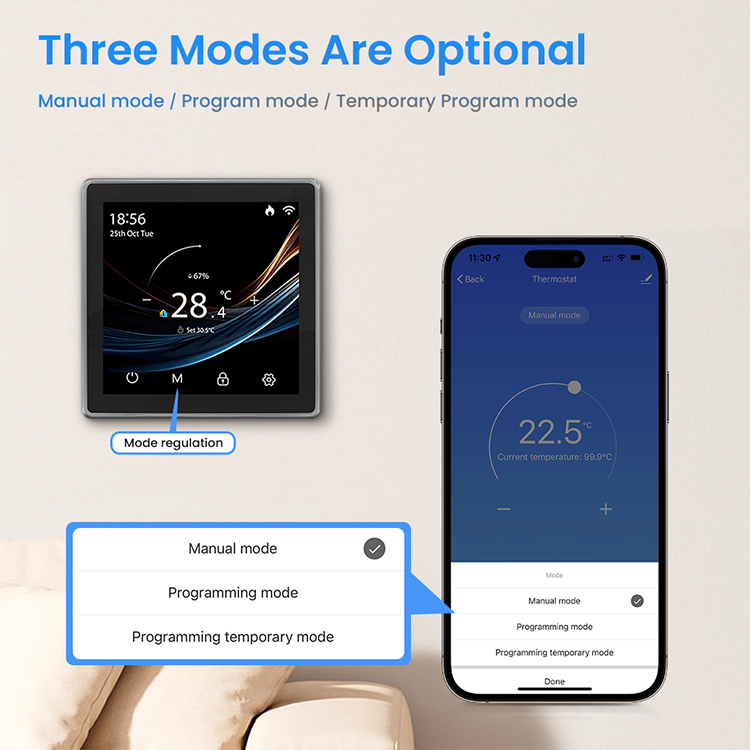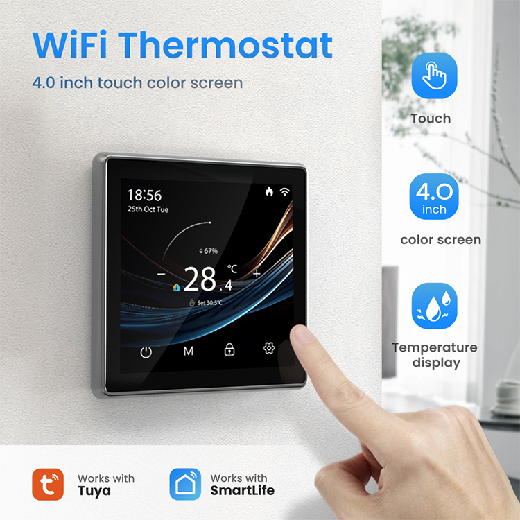 AVATTO WT500 Thermostat intelligent WiFi Tuya avec écran tactile couleur de 4,0 pouces, personnalisable OEM/ODM pour le chauffage électrique/à eau/à gaz