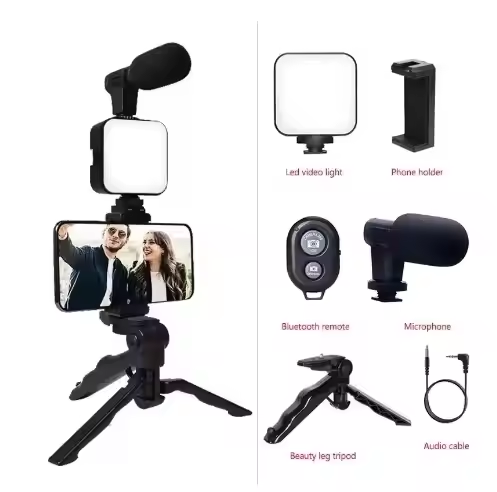 Trépied AY49 Support de Téléphone Mini Microphone Lumière d'Appoint LED Télécommande pour TikTok Live Stream Vidéo YouTube