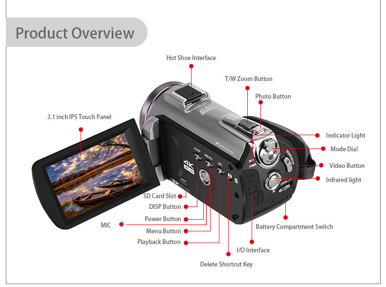 AZ50 Vision nocturne infrarouge 4K UHD Vlog 3.1 pouces IPS écran tactile caméra vidéo