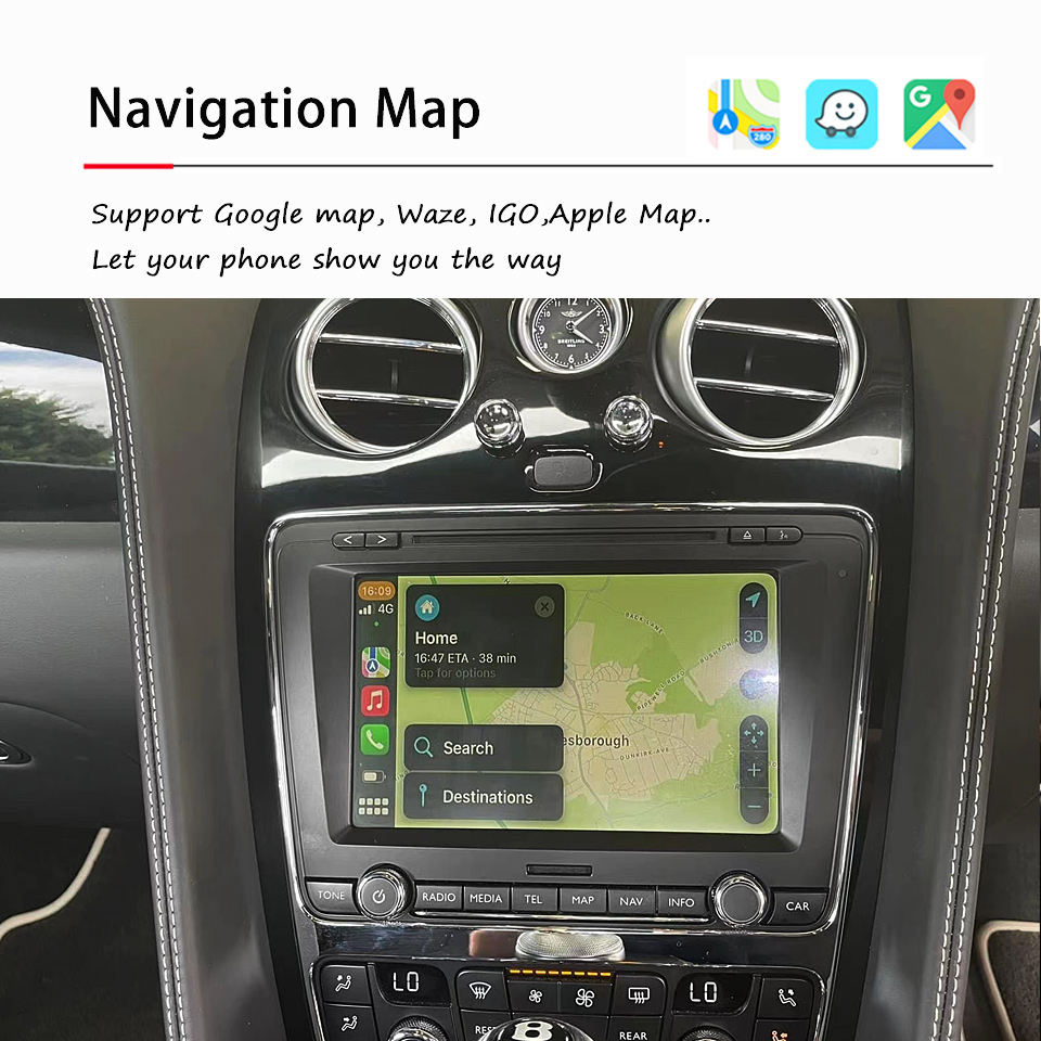 Interface vidéo multimédia sans fil AZTON Factory Radio Upgrade pour Apple CarPlay et Android Auto pour Bentley Continental Flying Spur