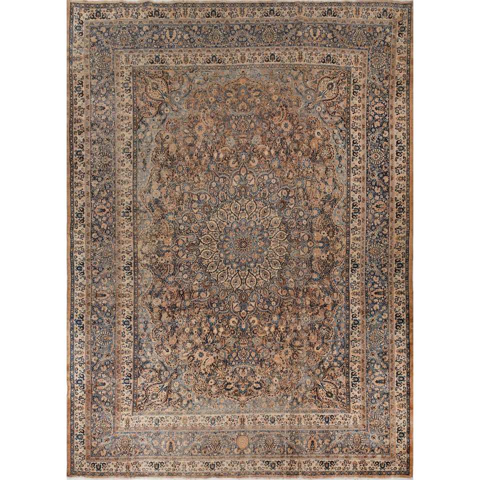 Tapis en laine noué à la main Aalam Blue Pae-6390 9x12 rectangulaire à motif médaillon pour la décoration de la maison, du salon ou de l'couloir