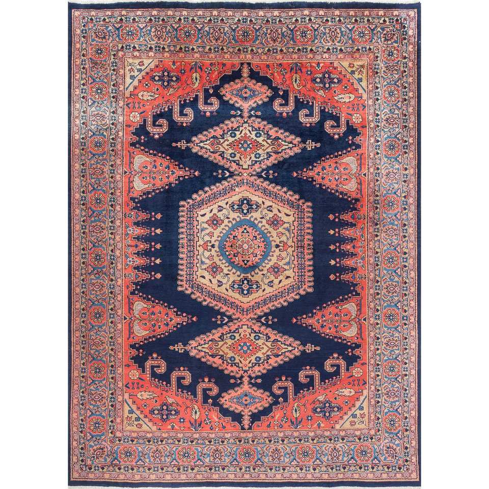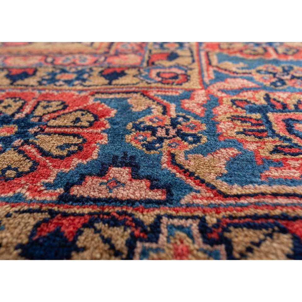 Tapis en laine noué à la main Aalam Blue Pae-5575 9x12 rectangulaire à motif médaillon pour la décoration de la maison, du salon ou de l'couloir