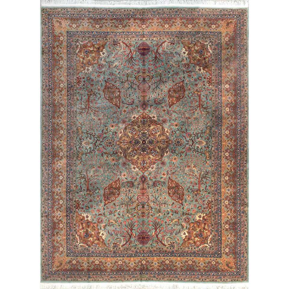 Tapis en laine noué à la main Aalam Blue, motif floral oriental pour la maison, le salon, la chambre - Pae-5746, rectangulaire 9x12, pour adolescents