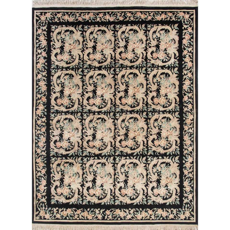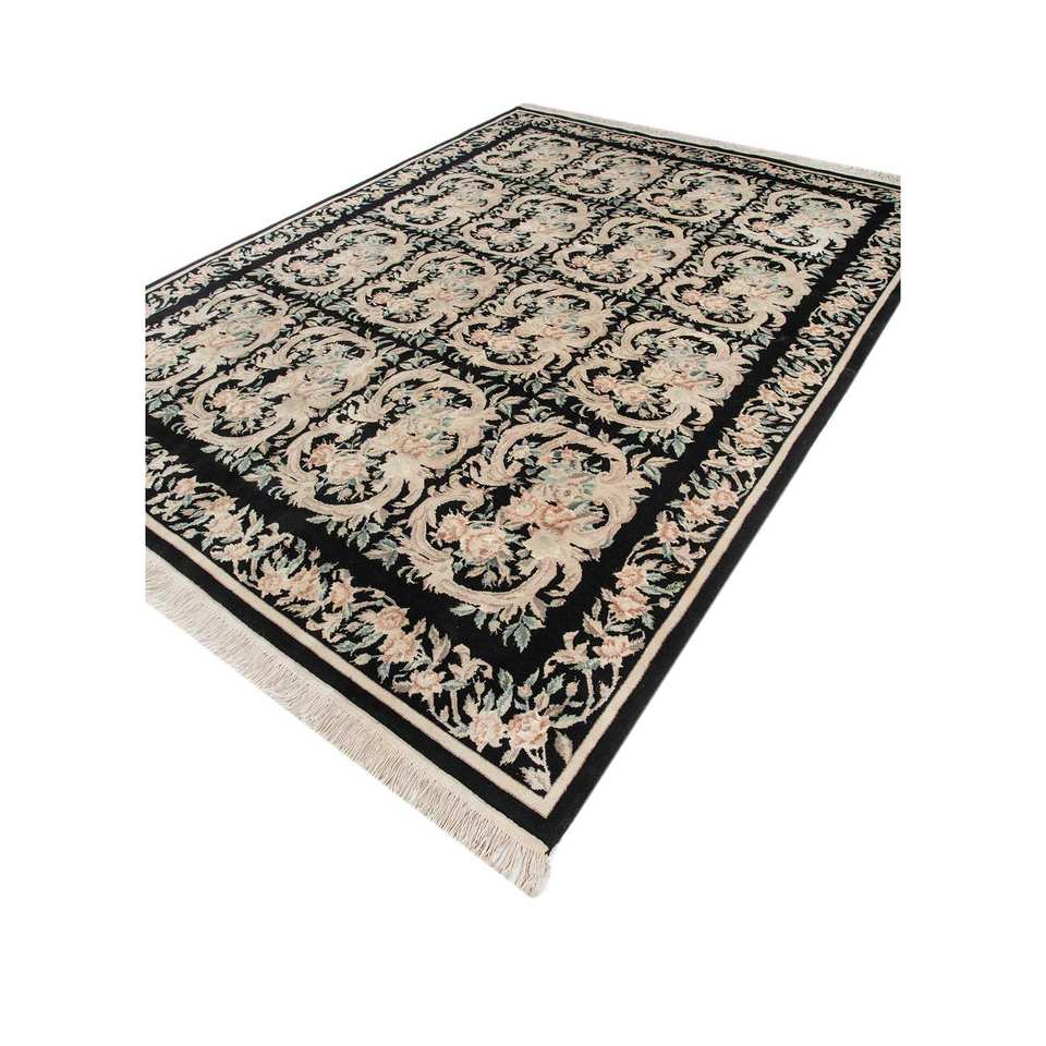 Tapis en laine noué à la main Aalam, motif floral gris et noir, pour salon, couloir, tissage plat, kilim rectangulaire, tapis en jute - Pae-5948