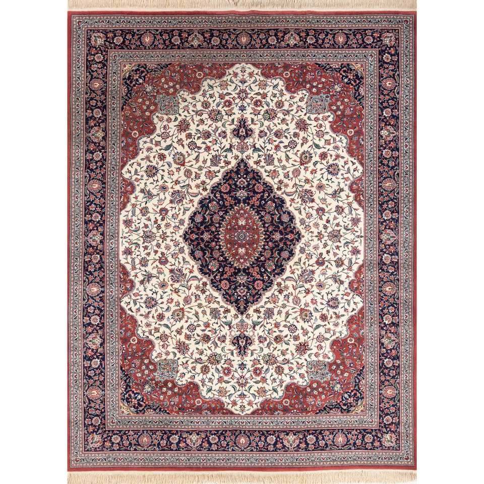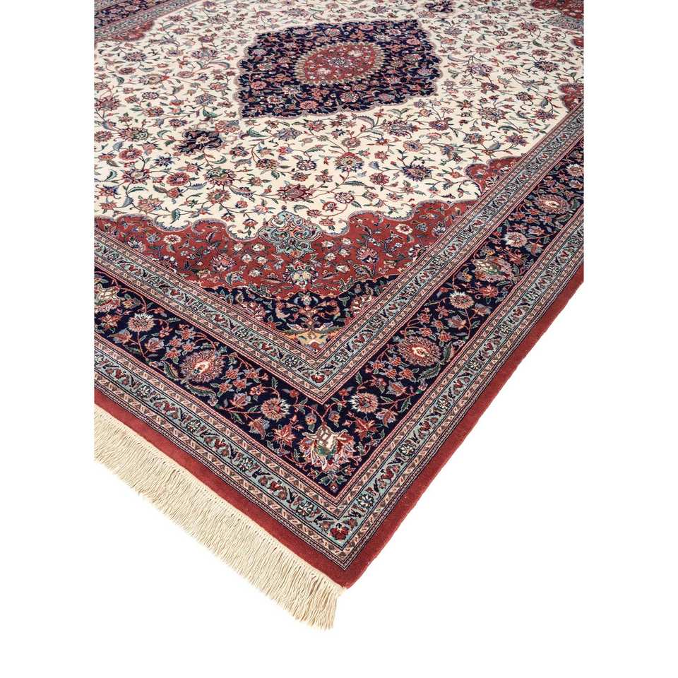 Tapis en laine noué à la main Aalam, motif médaillon abstrait persan Tabriz, couleur ivoire, design rectangulaire pour couloir, salon et chambre - Pae-4942