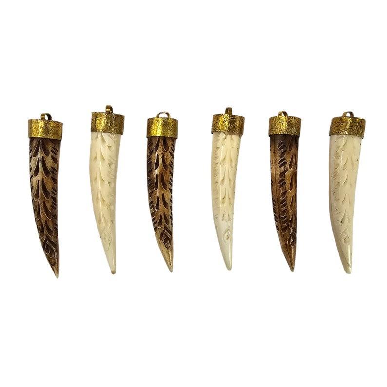 Pendentif en corne d'ormeau, os tibétain, dent, pointe, tusk, forme de balle, avec anneau en laiton, bijoux fins, pendentifs et breloques
